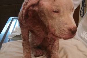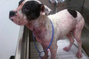 We came across this girl at the Farmers Market in Lexington, NC in desperate need of help. She was obviously suffering from a skin condition, red skin, bleeding paws, sparse fur, her bones were protruding and her eyes were inflamed and crusty. She came running to us begging for food, attention and help. We have…