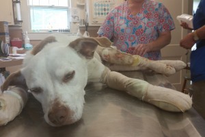 WARNING GRAPHIC IMAGES BELOW We received a called from the Davidson County Animal Shelter about a stray dachshund mix who came into the shelter with a bandaged leg. The shelter has no funding for vet care so they asked if we could help…Dr. Hedrick has named her Cinderella. The extent of her injuries were…