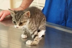 Thomasville Animal Control Officer Candace Lewis found this little guy wandering around a vacant property in Thomasville in desperate need of help shortly before 6pm on 11/17/14. He was very hungry, had no collar and he was missing most of his left hind paw and his right hind leg was also missing from a little…