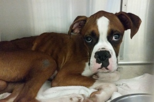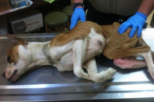 Upon learning that Grace, the dog who did not make it due to being starved to death, had puppies we have been working hard in order to gain custody of her remaining pups. Thankfully, with the help of the DA’s office we were able to gain custody of Grace’s little ones yesterday evening on 2/5/15….