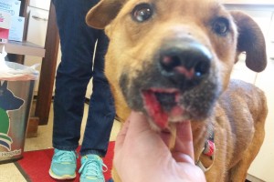 Officer Dennis with the Lexington Police Department was responding to an animal welfare call on 10/5/14 were he found this boy chained, emaciated and in desperate need for help. Officer Dennis called us for help and headed to Davidson Animal Hospital to get this mistreated boy the immedate medical care he needed…we have named him…