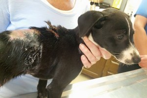 Lexington Animal Control Officer Sam Fritts was responding to a call on 5/27/14 concerning a injured puppy. Upon arriving at the location he found this little guy suffering from a horrific injury to his left eye. Officer Fritts brought the puppy to Davidson Animal Hospital to be seen by Dr Hedrick…we have named him Little Ranger….
