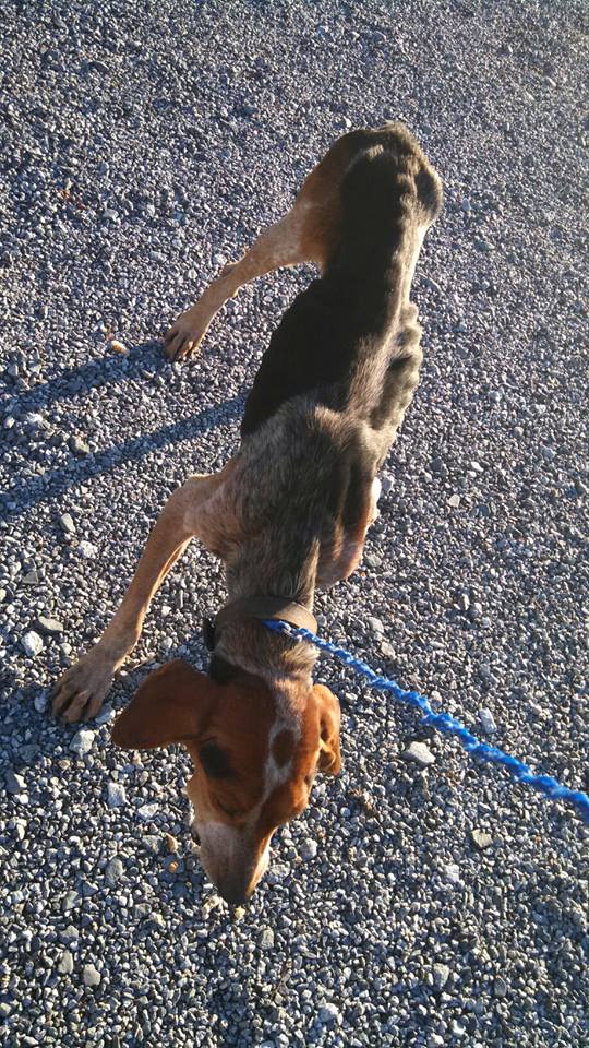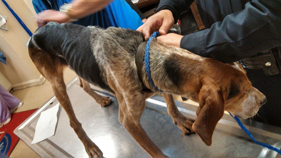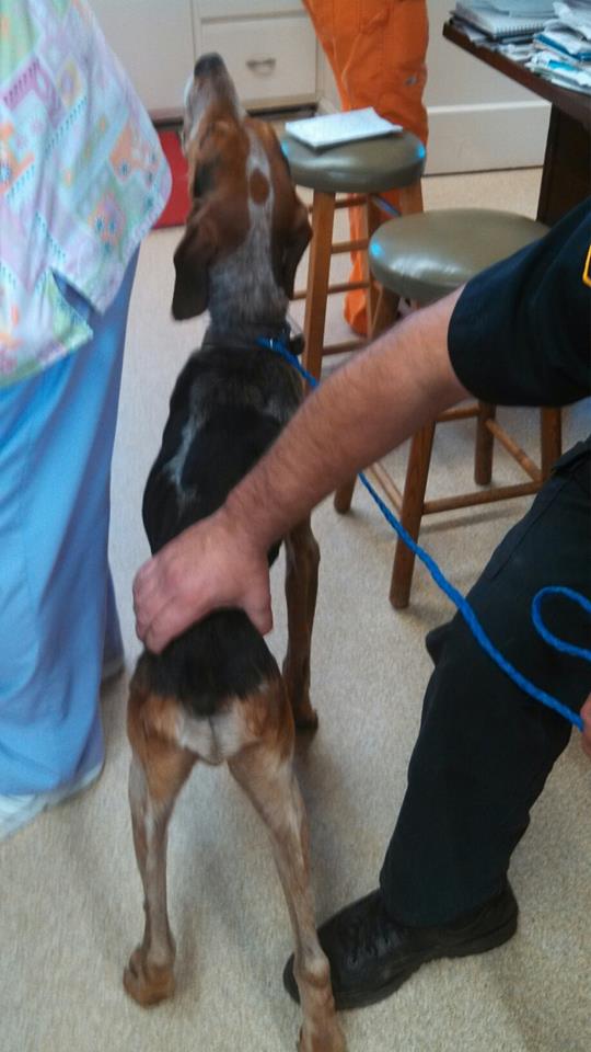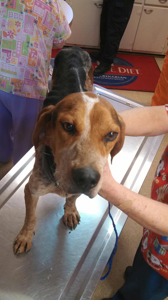 Lexington Animal Control Officer Sam Fritts and the Lexington Police Department were responding to animal welfare call on 12/17/13 when they found a male Walker Coonhound along with a smaller female Shepherd mix in need of help. The male was chained and the female dog was in a outdoor kennel. Both dogs had no food or water. The male dog was emaciated and needed medical help. They were seized and immediately taken to Davidson Animal Hospital to receive the medical care they needed. We named them Sam and Ellie.