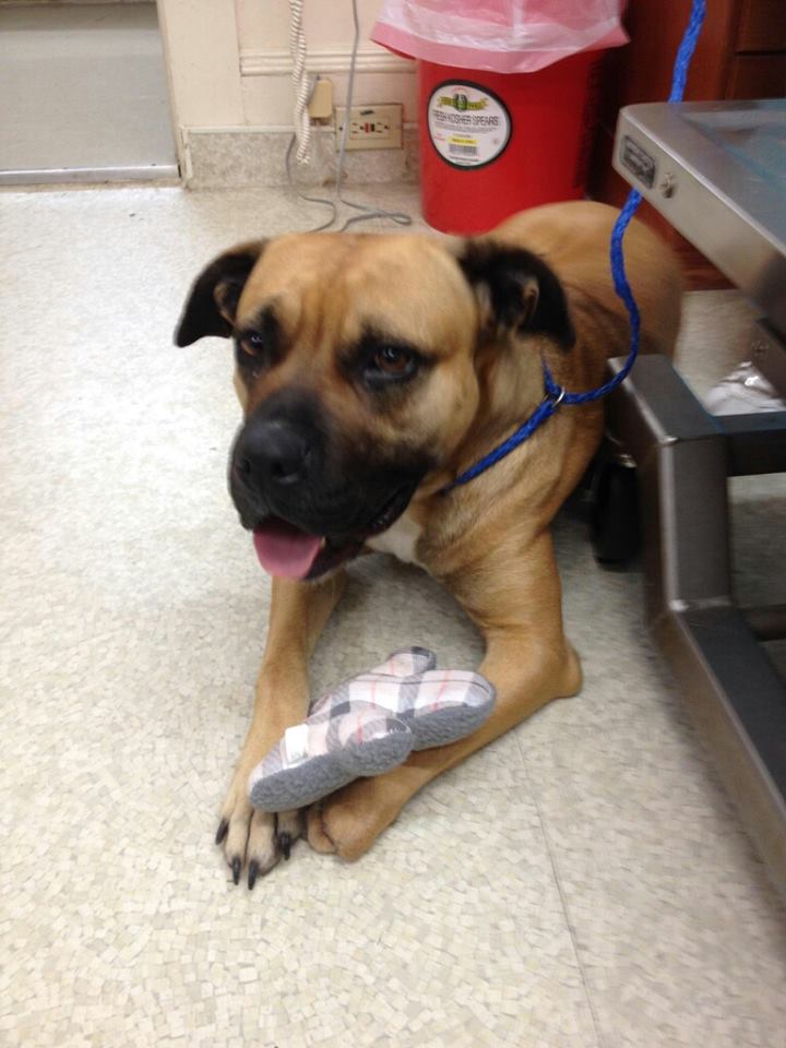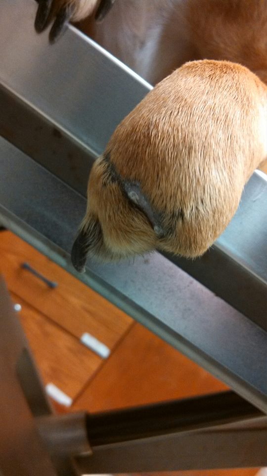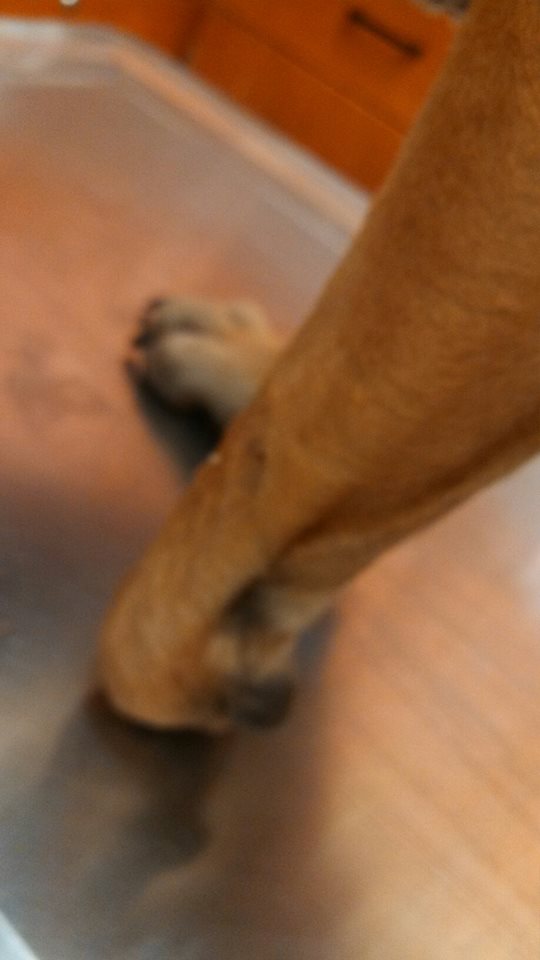 The good news is that her joints are still perfectly intact so Dr. Hedrick believes that she may be a good candidate for a prosthetic paw. He does think that her tail is going to need surgery after the infection is cleared and that she will probably need surgery on the remainder or her paw if a prosthetic is an option (otherwise a further amputation may be needed). She is also in heat but thankfully not pregnant yet so she will spayed asap.