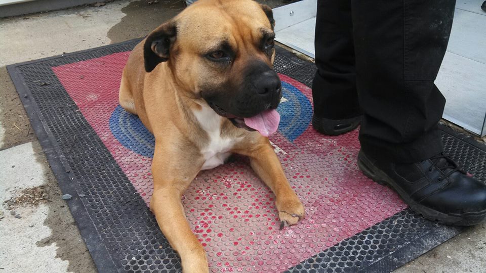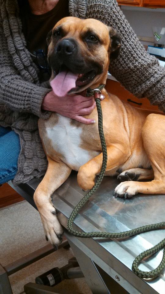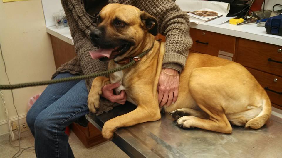 We received a call today from Thomasville Animal Control requesting for help for a stray dog who was missing most of her front paw and part of her tail. Officer Bingham has been trying to catch her for a few weeks but she was scared, injured, emaciated and would always stay out of reach. Luckily a nice lady living close by was willing to help. She began putting out food for her everyday and the injured, emaciated girl began to gain weight. Neither Officer Bingham nor the lady had been able to get close enough to her to catch until today. To Officer Bingham’s surprise once he caught her she was no longer scared, instead she showered everyone with lots of love and sloppy kisses. He knew that she needed medical care so he called us for help and brought her into Davidson Animal Hospital.